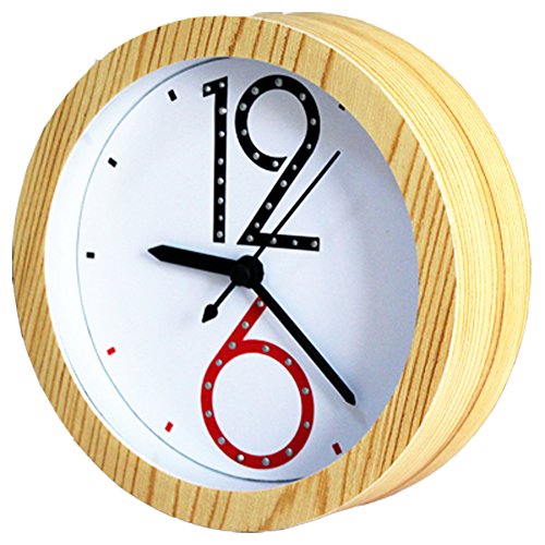 Grazing 5" Simple Arabic Numbers Imitation Wood Grain Non Ticking Sweep Silent Round Desk Travel Alarm Clock (Simple Numbers )
