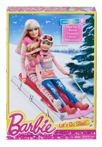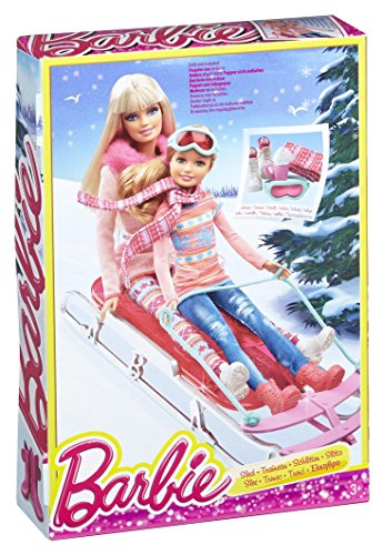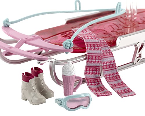 With this sparkly pink sled, Barbie doll and a friend (dolls sold separately) can fun sliding down a slippery mountain slope