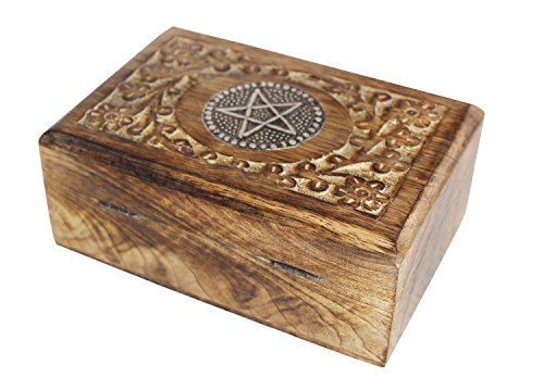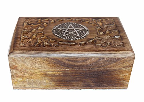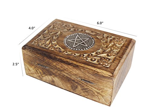 Valentine Day Gifts Hand Carved Wooden Keepsake Decorative Star Design Jewelry Trinket Box Storage Organizer with Floral Patterns for Girls Women