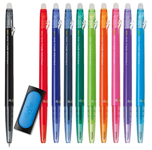 -. Title : Pilot FriXion Ball Slim 038 Retractable Erasable Gel Ink Pen, Extra Fine Point, 0.38mm, 10 Color Set & FriXion Eraser