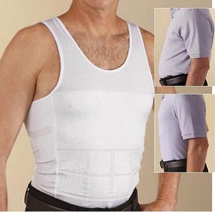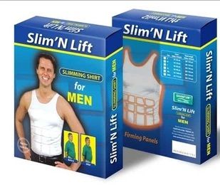 With the incredible men slimming shirt. This comfortable undershirt features uniquely designed firming panels to trim and tighten that bulging stomach so you look firm and fit instantly. The Slim N Lift slimming shirt even smoothes out your back for a lean tapered appearance. Now you can look inches smaller and pound thinner without exercise.
