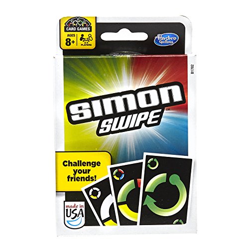 -. Binding : Toy -. Brand : Hasbro -. EAN : 0630509278145 -. Feature : Challenge your friends in the card version of Simon Swipe / Match Color or Swipe cards or use Wild cards on your turn / Get the lowest score for the win / Includes 60 cards and game guide / For 2 to 4 players -. IsAdultProduct : 0 -. ItemPartNumber : B1782 -. Label : Hasbro -. Manufacturer : Hasbro -. Model : B1782 -. MPN : B1782 -. PackageQuantity : 1 -. PartNumber : B1782 -. ProductGroup : Toy -. ProductTypeName : TOYS_AND_GAMES -. Publisher : Hasbro -. Studio : Hasbro -. Title : Simon Swipe The Card Game -. UPC : 630509278145 -. Warranty : No Warranty