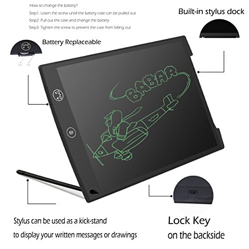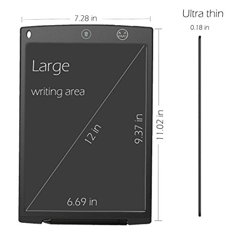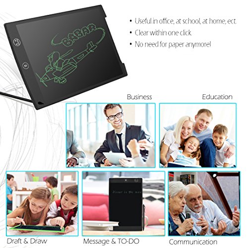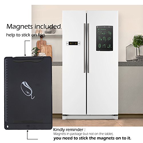 -. Feature : FUN and CREATIVE: The LCD Writing Tablet uses liquid crystal technology, just press against the board and the lines appear. Fun and creative to draw on. / Convenient to use: No need to look for paper anymore, the writing tablet is a very handy tool for doodling and drawing, and at the press of a button your sketch is electronically erased. / Portable and easy to store: It weighs only 3.9 ounces and is ultra thin, making it easy to hold and to store in your briefcase, daypack, purse or luggage. / Environmental - friendly: The writing tablet can be used over 50,000 times, no charging needed; and the battery will last for 2 years and is easily replaceable. No more worry about wasting paper and killing trees. / Comes with an additional soft storage bag and 2 pieces of magnets :). We are committed to make your life more convenient.