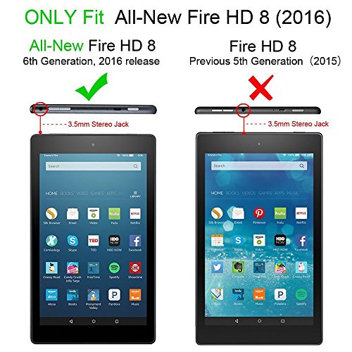 Specifically designed for Amazon Fire HD 8 (Previous Generation - 6th, 2016 release) with precise cut-outs and openings for easy access to all tablet features