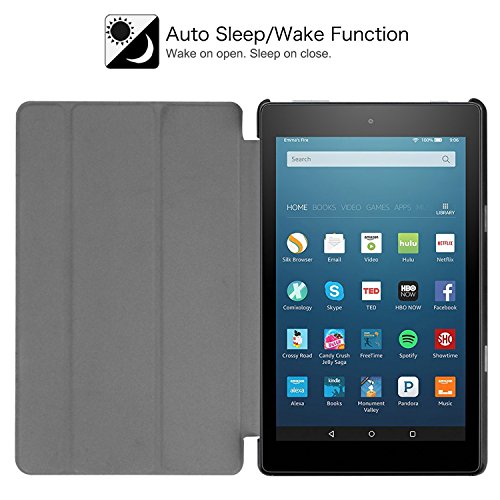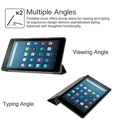 Amazon New fire HD 8 Case, iDudu Ultra Slim PU Leather Lightweight Smart shell Stand Cover Case with Auto Wake / Sleep for Amazon New fire HD 8 (Previous 6th Generation - 2016 Release ONLY), Black