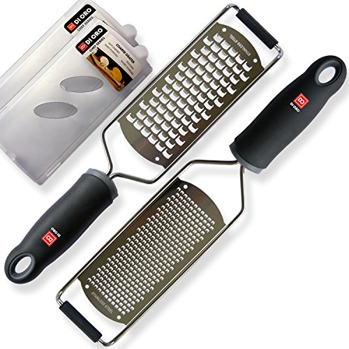 di Oro Living Premium Lemon Zester & Cheese Grater 2-Piece Set - 18/8 Stainless Steel Blades, Ergonomic Handles (Black)