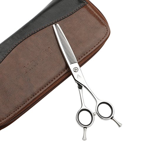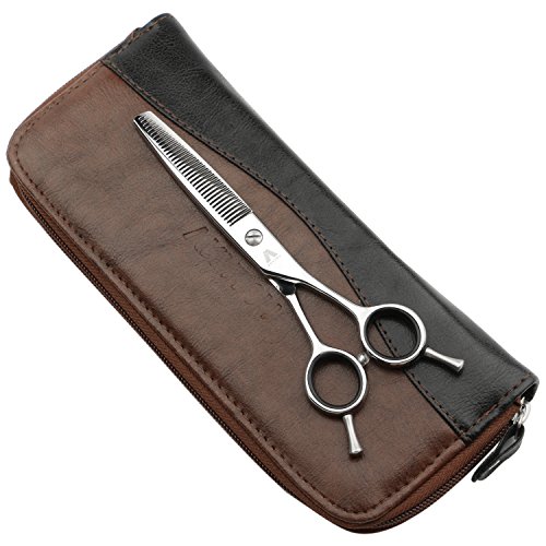 Packing list ● 1 x Thinning scissors ● 1 x PU leather case ● 2 x Carbon fiber combs ● 1 x Cleaning cloth (random color) 100% satisfaction guarantee: Your Satisfaction is Our Unremitting Pursuit. First, Each pair of scissors will be checked several times before we pack it up. Second, All of our orders will be sent by Amazon to avoid logistics problems. Third, If anything goes wrong, Amazon would offer you the best solution. Tips 1,Try to avoid cutting the air. 2,Only used for hair cutting. 3,Clean up in time and put on lubricant oil if necessary. 4,Handle with care and do not throw. 5,Do not cut dry hair or thick hair at beginning. 6,Be careful and keep it away from children.