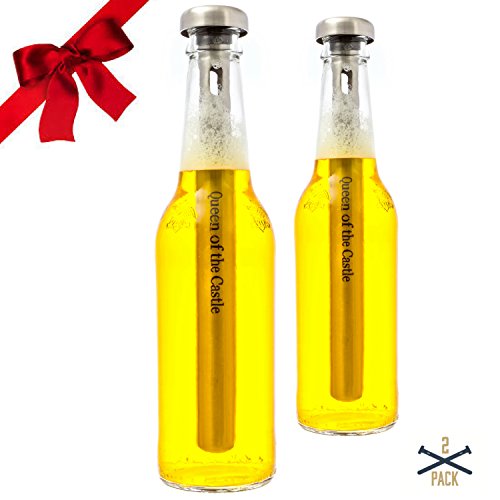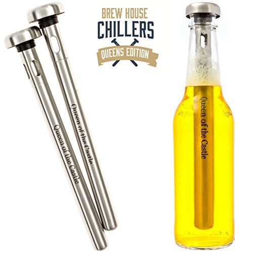 Brew House Beer Chillers - Queens Edition - “Queen of the Castle” Engraved on Chilling Sticks - Original Boxed Gift Set of 2 for her