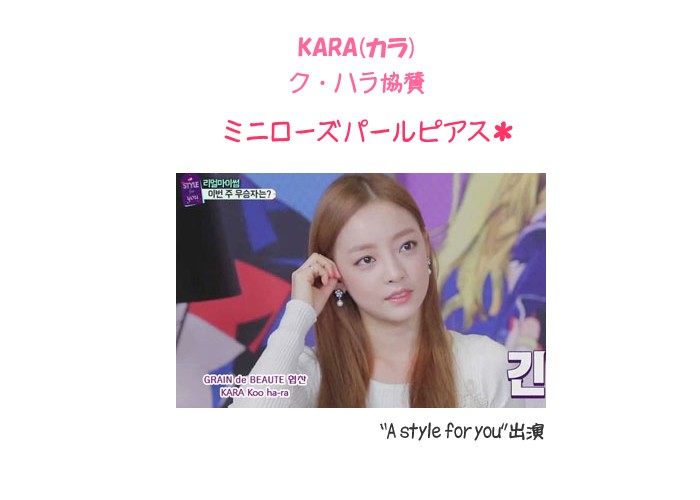 ***KARAのファションアイコン!ク・ハラ協賛アクセサリー★モダンデザインのローズがおしゃれ感をUP!パールと組み合わせてエレガントかつ愛らしい雰囲気を合わせ持つピアスです☆*ハラ着用カラー:ピンク**サイズ:1.5×3.3cm*素材:セルロースアセテート、ステンレススチール*メーカー:Aznavour