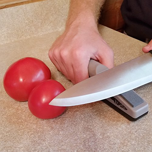 POPULAR, WIDESPREAD, and WELL RECEIVED! Newspapers & media love our knife sharpener! Our product has been seen on NBC, ABC, CBS, FOX and hundreds of other media sources. Our Amazon Customers say: “Works great” “Easy to use” “Quality made product” “Old knives cut like new” “You have got to try it for yourself”.