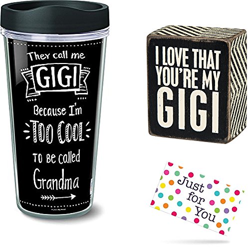 [Product Information]- Give the perfect sentimental gift to Gigi - includes "I Love That You're My Gigi" box sign, 16 ounce Gigi travel mug, and "Just for You" gift tag with envelope