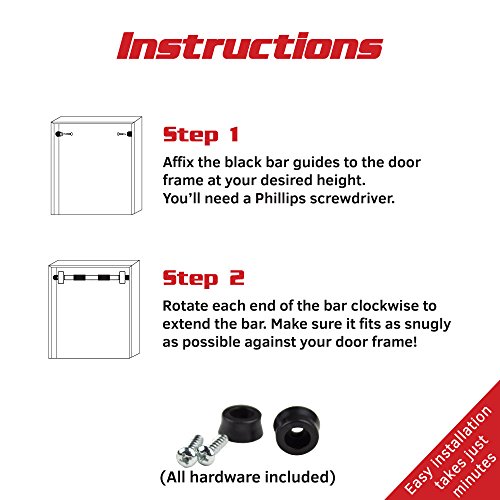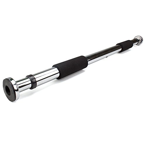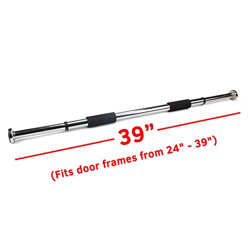 - Feature : Utilize your own bodyweight to work your whole upper body in the comfort of your home / Adjust to bar to ground level to add dozens of floor exercises to work your core / Tough steel construction cushioned with high-density foam comfort grips that are easy on hands / Quick, easy installation--just screw in two plastic caps and tighten your bar! / Safely supports up to 220 lbs. and fits most standard door frames 24"-39"