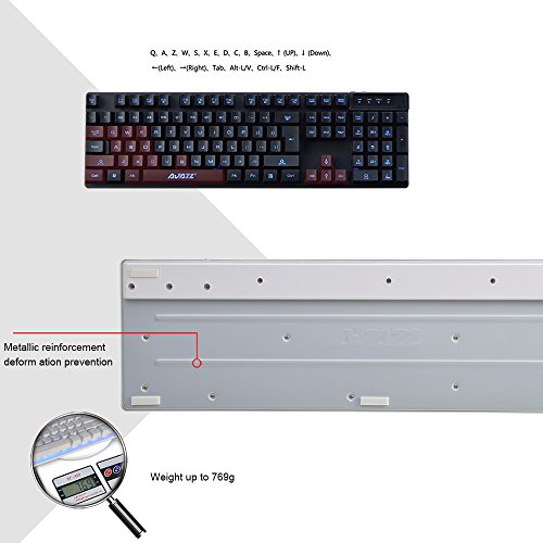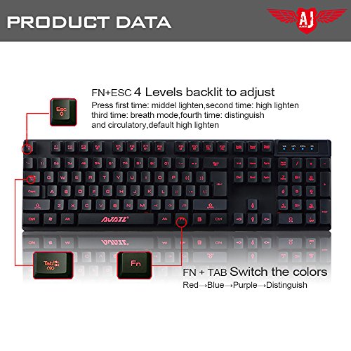 -. Title : Ajazz Cyborg Soldier Gaming Keyboard, 104 Keys 3 Colors Backlit Quiet USB Wired Keyboard, Black