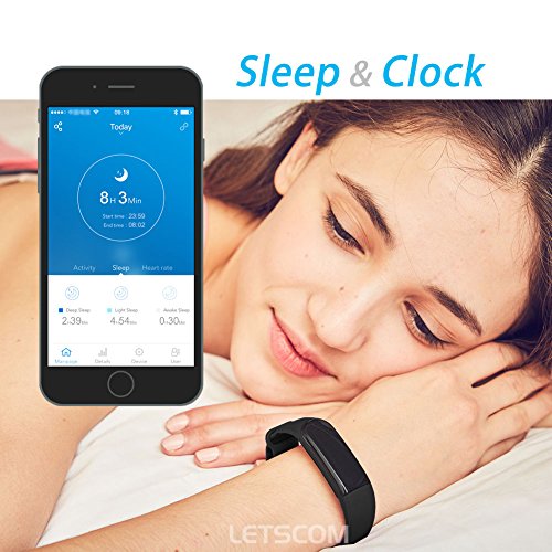 -. Feature : Sports Fitness Tracker - heart rate monitoring, pedometer, calories record, sleep quality monitoring, sync date and time, notifications, remote camera control, anti-lost alert, find Phone, sedentary alert, etc. / Accurate Heart Rate Monitor(NOT for medical use) - newest HR sensor adopted for accurate and effective heart rate monitoring. 24-hour real time heart rate monitor with HR chart make your fitness conditions visual on LETSFIT APP. / Responsive OLED Touch Screen - by tapping/sliding on the OLED touch screen, you can easily read the steps counting, heart rate, calories, time, date, messages, etc. / No Charging Cable Needed - LETSCOM fitness tracker can be removed off the strap and recharged from any 5V/1.0A USB power supply. High quality polymer rechargeable battery guarantees long battery life: about 7-10 days standby time/4 days operating time. / Key Specifications - Bluetooth 4.0, IP67 water resistant. Supports IOS 7.1 or above (iPhone 4S, iPhone 5/5S/5C, iPhone 6/6S plus, iPhone 7/7S plus,etc.); Android 4.4 or above (Download APP "LETSFIT" from Apple Store or Google Play. Smart phone only, not for PC or Tablet). Package Includes: Smart Bracelet * 1, Multi Language User's Manual *1, Charging Method Guide *1