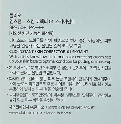 Clio Instant Skin Corrector, No. 1 Skymint, 1.69 Fluid Ounce
