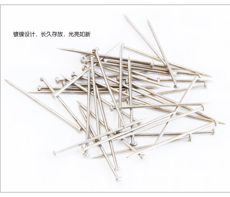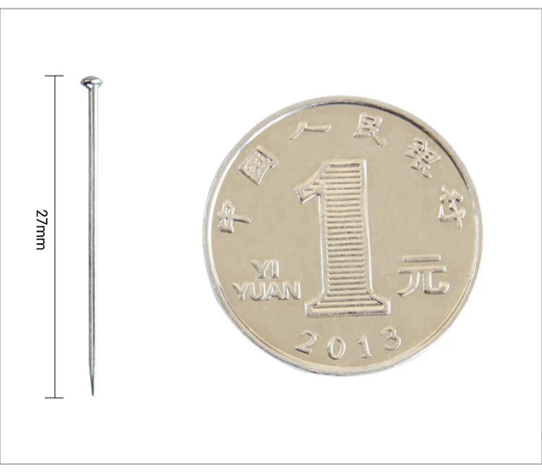 PVC筒装镀镍大头针,100克/筒,经济实惠,使用方便。 尺寸对比大头针no:27mm,重量:100g/筒可以做DIY手工铺助工具,立体裁剪定位和其它的工艺定位。