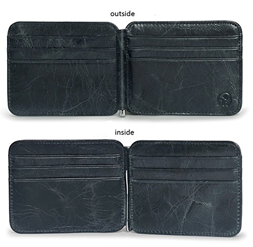 -. Feature : ✓ STREAMLINED DESIGN: No more bulky wallets. This streamlined money clip fits comfortably in your front or back pocket, and includes two outside card sleeves that hold up to six cards each, along with a unique sP.R.Ing-clip inside to hold cash. / ✓ ELITE FEATURES: 12 Card Slots include inside and out side, 1 Larger Card/Money/Receipt Pocket - Money clip can be entered from top or bottom to suit your Preferred Choice. For both Left and Right Handed use. / ✓ GENUINE LEATHER - Made with the Finest Full Grain genuine leather, looks classy and very slim, Wallet Dimensions: Regular version: 4.88 x 3.46 x 0.38 inches, Mini version: 4.6 x 0.38 x 2.9 inches / ✓ HOW IT WORKS- At last! A wallet that will meet your everyday needs. The wallet is equipped with a front pocket made for your most used card. 2 pockets on the inside, with a photo ID slot, and a money clip to hold your cash. Wallet case also has smart pull-strap for quick access to your everyday cards. / ✓ GREAT GIFT IDEA: This makes the perfect gift for men, boyfriend, fathers day gifts, birthday gifts for him ideas, wedding, graduation, anniversary, brother, guys, dad, realtor gifts, husband, Christmas and any other gift opportunity. This wallet will fit in your jean pocket, without adding any bulk to your pockets. Can hold at least 8 credit cards. Minimalist product.