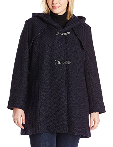 Textured wool-blend toggle coat with attached hood and front hand pockets