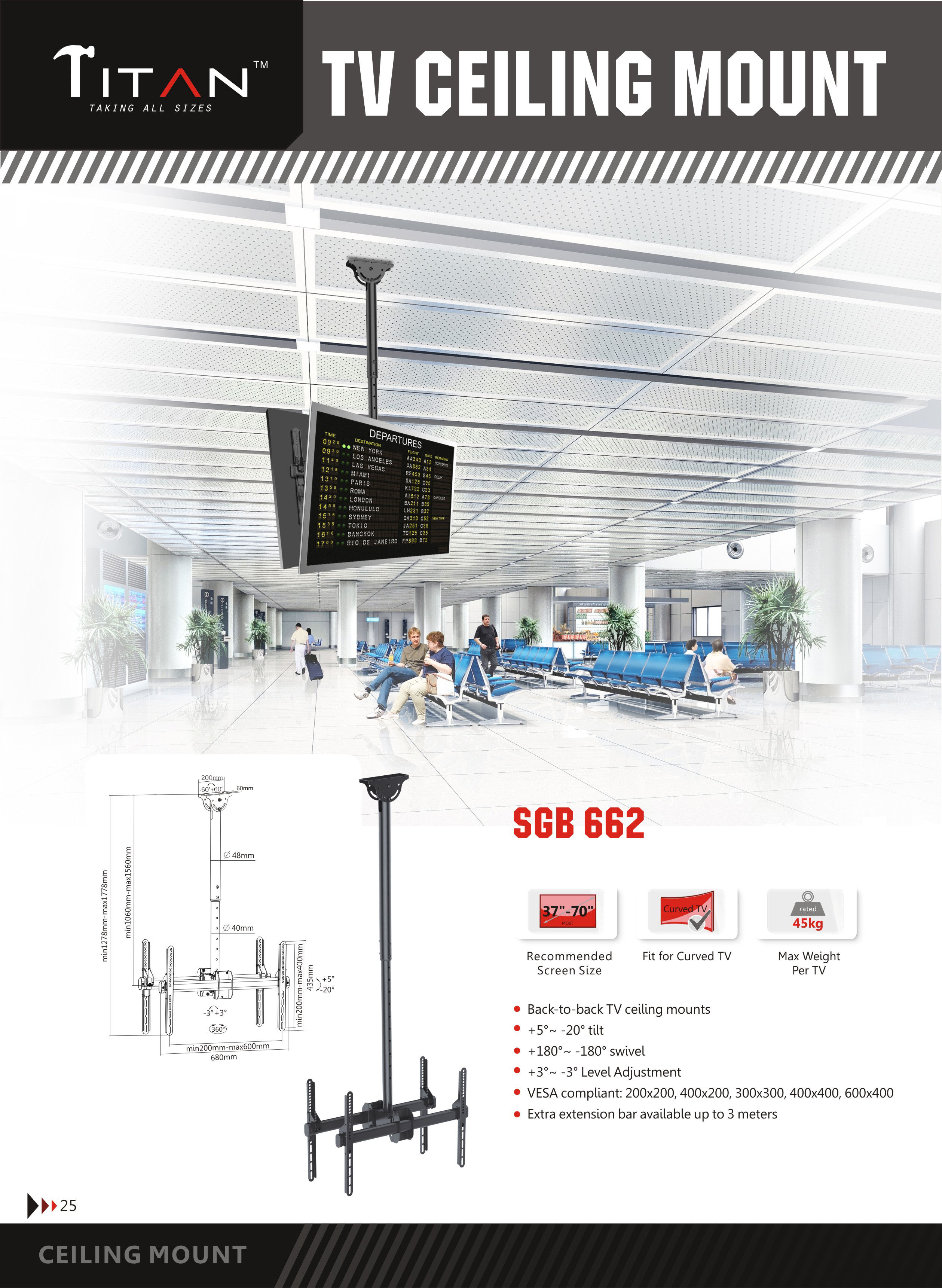 ·u0026nbsp;u0026nbsp;u0026nbsp;u0026nbsp;u0026nbsp;u0026nbsp;u0026nbsp;u0026nbsp; Model – SGB 662 (BACK TO BACK) CEILINGu0026nbsp;MOUNT BRACKET