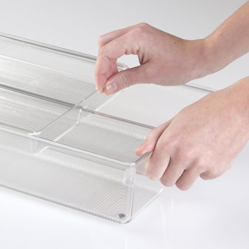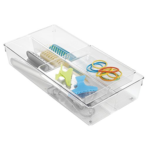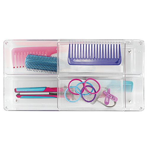 mDesign 2-Piece Sliding Vanity Drawer Organizer for Hair Brushes, Combs, Flat Irons, Accessories - Clear