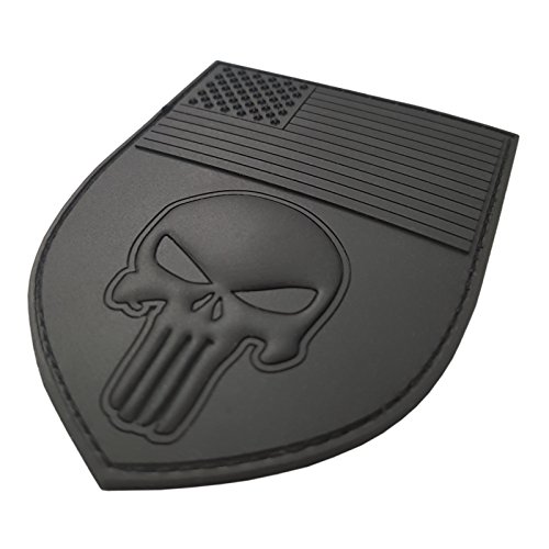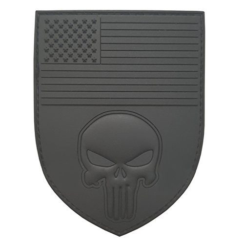 All Black USA American Flag Punisher Shield Subdued ACU PVC Rubber Fastener Patch