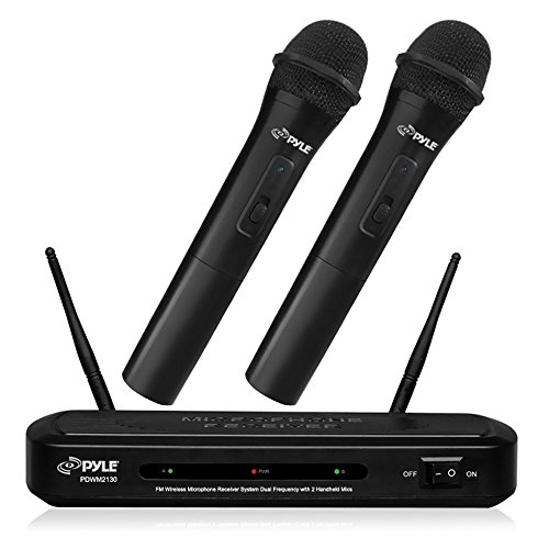 Pyle PDWM2130 Wireless FM Microphone Receiver System with Dual Frequency and Two Handheld Microphones