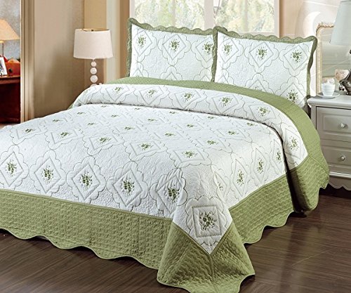 (home must haves)/Bedding Bath/Bedding/DIRECT FROM USA/Homemus thaves-3pc Bedspread Quilted High Quality Bed Cover Sage Embroidery Quilt Cream (Queen)
