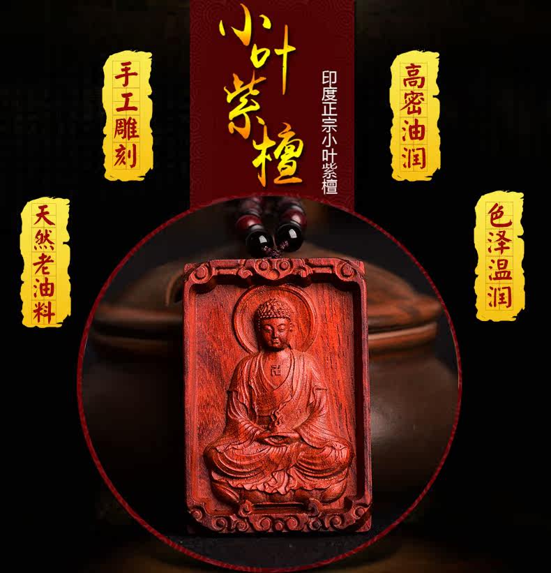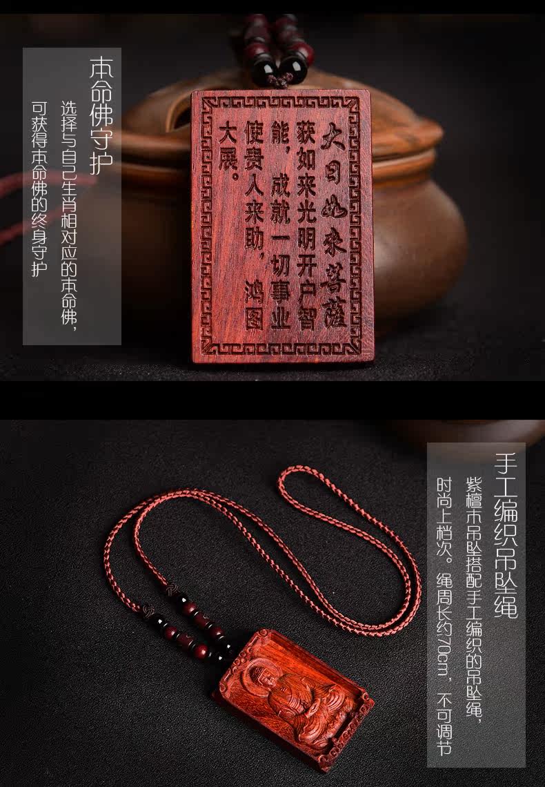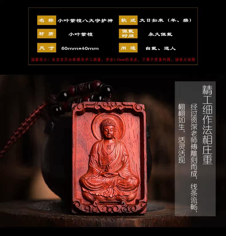 开光小叶紫檀木大日如来吊坠 生肖属羊猴本命佛守护神男女款项链