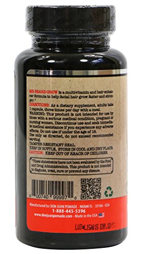 -. Binding : Health and Beauty -. Brand : Don Juan -. EAN : 0638458850337 -. Feature : A Powerful combination of multivitamins to nourish and support your natural facial hair growth - 90 Capsules - 1 Month Supply / Grow a Fuller, Thicker and Stronger Beard with this highly effective formula for Men / Guaranteed 100% Drug-free Dietary Supplement / Made with Gelatin capsules for easier consumption and digestion. / Vegan Formula -. IsAdultProduct : 0 -. Label : Don Juan -. Manufacturer : Don Juan -. MPN : DJ_BEARDGROW -. PartNumber : DJ_BEARDGROW -. ProductGroup : Health and Beauty -. ProductTypeName : HEALTH_PERSONAL_CARE -. Publisher : Don Juan -. Studio : Don Juan -. Title : Mr. Beard Grow - 5000 MCG Biotin - Powerful Facial Hair Enhancer Formula For Men- 90 Veggie V-Capsules -. UPC : 638458850337