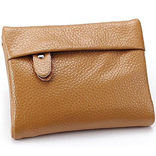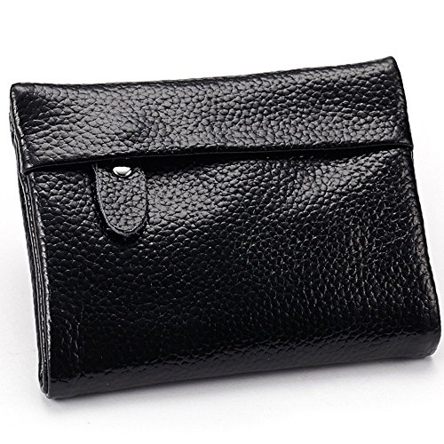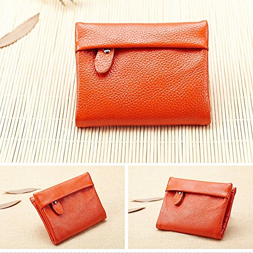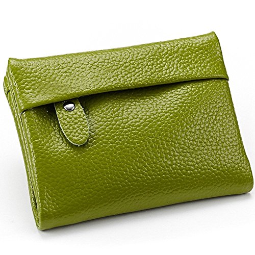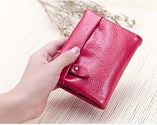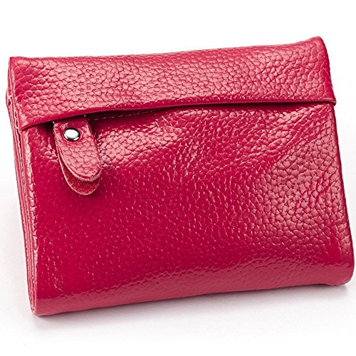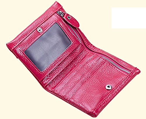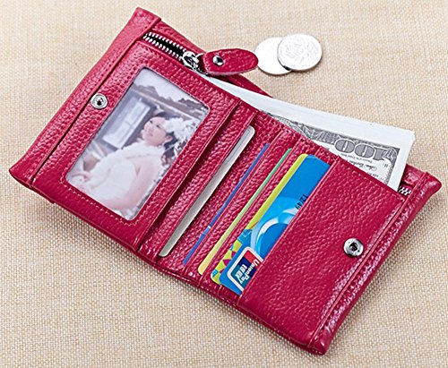 A womens wallet with change purse and card holder. Inside, there are 5 credit card slots, 1 ID window and 2 money compartments, one of the bill sections is zipper closure design. Outside there is 1 zipper coin pocket. The wallet is Snap-on closure design, so safe that will not lose any card. And, it is made of high quality split leather, soft and durable. Plus the solid color, it can be used for years but still looks new.