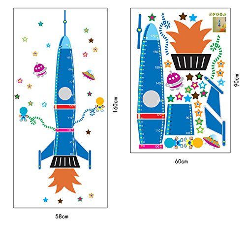 Uniquebella Rocket Lift off Nursery Decor Growth Charts Kids' Room Decor Height Chart for Kids Room PVC Removable 60x90cm