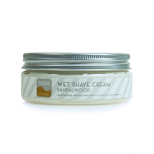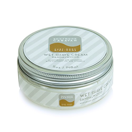 Driftwood Caravan Shave Cream (Sandalwood Fragrance) - All Natural - Moisturizing Lather - With Coconut Oil and Vitamin E - 5 Ounce