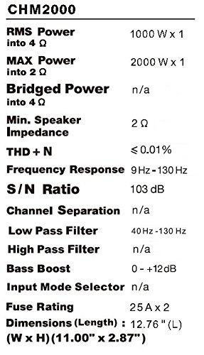 BOSS AUDIO CHM2000 CHAOS 2000-Watt Monoblock, Class A/B 2 to 8 Ohm Stable Monoblock Amplifier with Remote Subwoofer Level Control