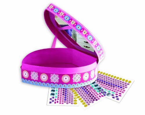 Includes a heart shaped box with mirror and felt and 500+ sparklng jewel stickers.