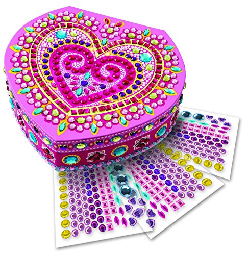 Includes a heart shaped box with mirror and felt and 500+ sparkling jewel stickers