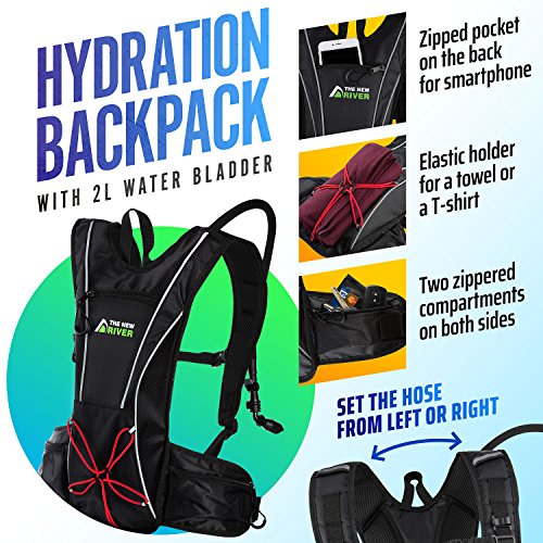 -. Title : THE NEW RIVER Insulated Hydration Pack with Pockets 2 Liter Backpack Style Drink Bladder for Travel Running Hiking Cycling Tube w/ Bite Valve Regulator Built-In Pockets