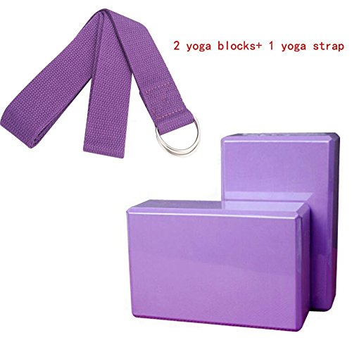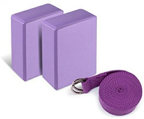 Yoga Foam Blocks (Set of 2) plus strap with Metal D-Ring - Standard Studio Size 9" x 6" x 4"