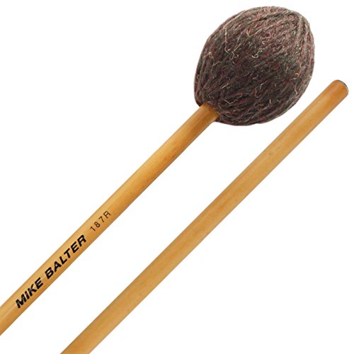Studio : Unlimited Publisher : Unlimited Product Description This listing includes the pair of Mike Balter Universal or Contemporary Mallets of your choice. These mallets are created for those serious about marimba playing, but we have selected a few mallets that are fun to use on all your percussion instruments. The soft and extra soft yarn marimba mallets with their soft wool wrap and varying core materials create an incredible multi-tonal sounds with five octave instruments. Each of these mallets are soft enough to flourish in low octaves of extended instruments, such as gongs, and retain strength when climbing to middle registers. Birch handles are strong and flexible, giving the the mallets added power and durability. ----- 186B Mallet Specifications: Hardness: Soft; Head Diameter: 1 3/4"; Overall Length: 17 1/8" ----- 187R Mallet Specifications: Hardness: Extra Soft; Head Diameter: 1 7/8"; Overall Length: 17 1/4" ----- 86B Mallet Specifications: Hardness: Extra Soft; Head Diameter: 2"; Overall Length: 16 7/8. 0