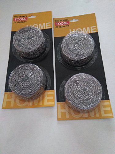 TOOM Large Size Strong Scourer Pads Stainless Steel Sponges Scrubbers, Multi Purpose Scrubbing Pads, Scourer Pads-Set of 4 , 40 g Each Piece