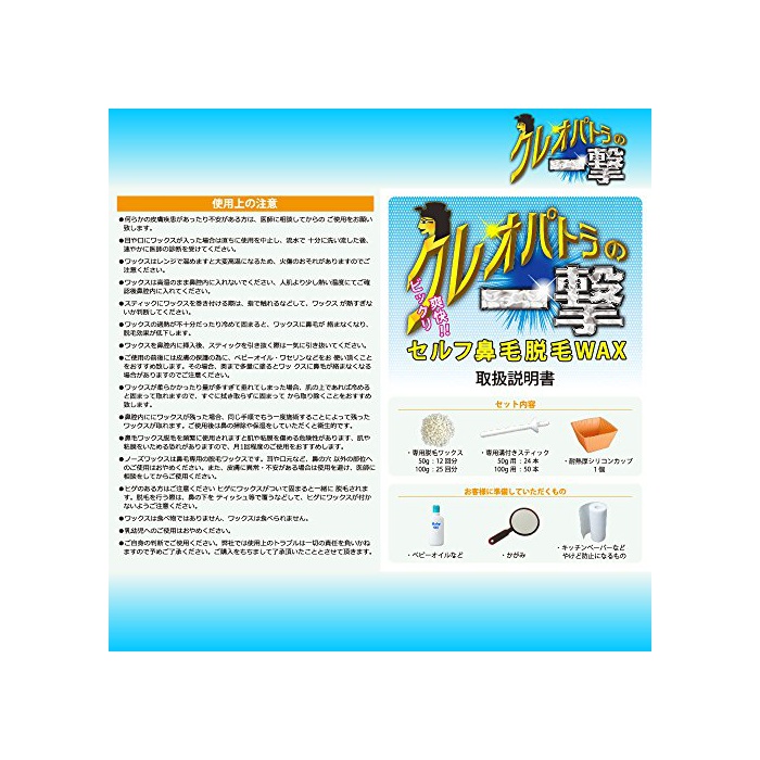 【상품 내용】왁스 제50g(12회분)실리콘 컵 1 개전용 스틱 24개(양비12회분) 취급 설명서