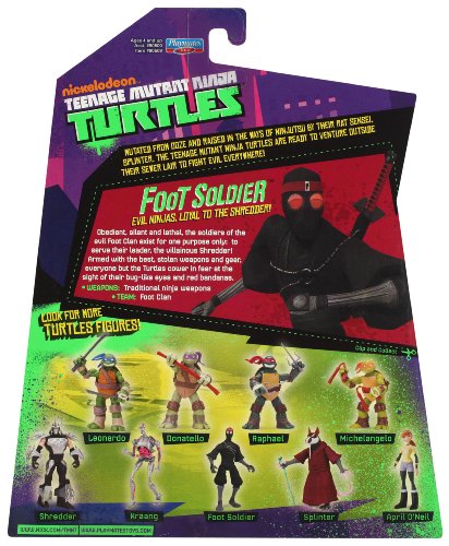 -. Binding : Toy -. Brand : Teenage Mutant Ninja Turtles -. EAN : 0043377905097 -. Feature : Obedient, silent and lethal, the soldiers of the evil Foot Clan exist for one purpose only: to serve their leader, the villainous Shredder / Armed with the best stolen weapons and gear, everyone but the Turtles cower in fear at the sight of their bug-like eyes and red bandanas / Teenage Mutant Ninja Turtles and all related titles, logos and characters are trademarks of Viacom International Inc -. IsAdultProduct : 0 -. ItemPartNumber : 905090 -. Label : Playmates - Toys -. LegalDisclaimer : SMALL PARTS NOT FOR CHILDREN UNDER 3 YEARS OLD. CHOKING HAZARD. -. Manufacturer : Playmates - Toys -. Model : 90509 -. MPN : 905090 -. NumberOfItems : 1 -. PackageQuantity : 1 -. PartNumber : 905090 -. ProductGroup : Toy -. ProductTypeName : TOYS_AND_GAMES -. Publisher : Playmates - Toys -. Studio : Playmates - Toys -. Title : Teenage Mutant Ninja Turtles Foot Soldier -. UPC : 043377905097 -. Warranty : No Warranty