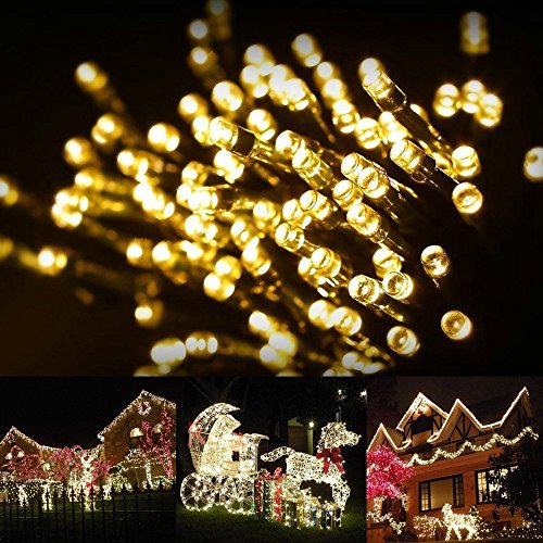 Christmas Solar String Lights by FirstLights – 39 Feet, 100 Warm White, LED Fairy Lights – for Home, Lawn, Garden, Patio - Waterproof Outdoor Lights
