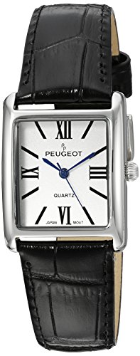 Peugeot Women's Silver-tone Tank Leather Dress Watch