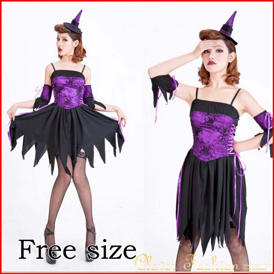 送料無料 ハロウィン 悪魔 デビル 魔女 小魔女 デビル コスチューム コスプレ衣装 ハロウィン 女王 QUEEN クィーン ロングドレス 仮装 舞台 ダンス ステージ パーティー コスプレ衣装 2次会 イベント パーティ 女子会 コスプレ衣装 パープル 紫 魔女 魔法使い 魔法師 巫女