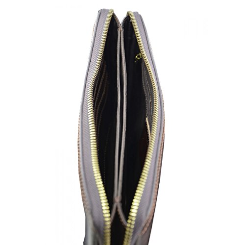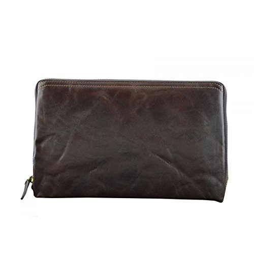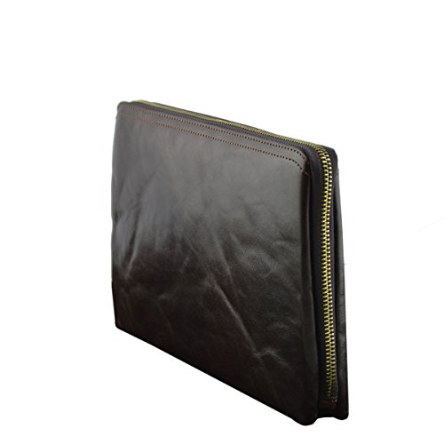 Product Description Genuine Leather Unisex Clutch - Harvey Genuine 100% Italian leather clutch. Essential and trendy design, perfect for those who like practicality without renouncing elegance. Outside - 100% genuine Italian leather - zip closure - leather band with metal button - leather and metal details Inside - synthetic fabric lining - two separate compartments - pocket with zip closure - credit card pockets External Dimensions 26 x 3 x 16 cm Weight 0.3 Kg 0