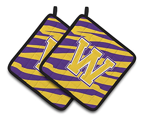 Caroline's Treasures CJ1022-WPTHD Letter W Monogram with Tiger Stripes Pot Holders (1 Pair), 7.5" x 7.5", Purple/Gold