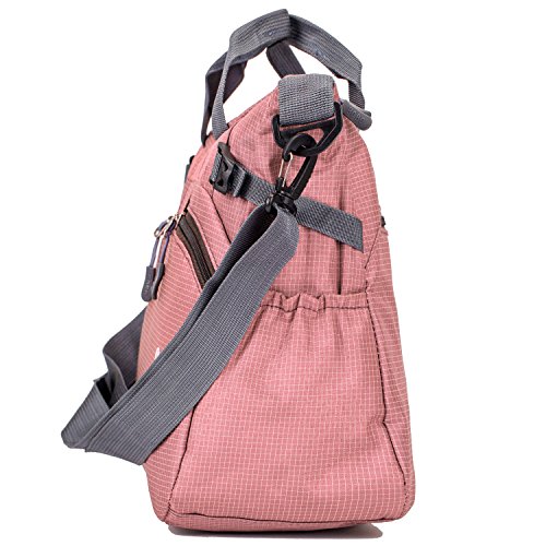 -. Feature : The material is 420D nylon fabric+ 221D polyester, durable and waterproof. / With 2 side pockets, you can put a bottle. / Many small pockets& large inside storage space,can be used as a laptop bag, also a travel bag. / Small diamond pattern, simple and low profile. / Adjustable padded shoulder strap to comfortably fit the tall and the short person.
