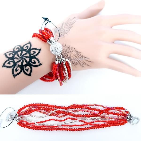 | じゃらじゃら 9連 重ね付け ビーズ ブレスレット マグネットタイプ エスニック レッド 赤色 【ブレスレット レディース ブレス ジャラジャラ ブレス アクセサリー エスニック アジアン モロッコ Bracelet ACCESSORY】 | |
