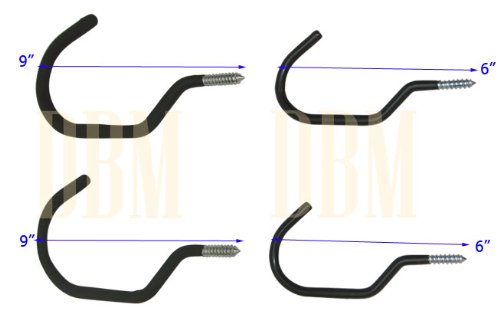 - Feature : 4 Jumbo Bike Hooks / 2 Pcs - 9'' big bike hooks ****** 2 Pcs - 6'' small bike hooks / Super grip protective coating-PVC / Ideal for hanging storage of bicycles, garden equipment, hoses, and etc.... / Quantity: 1