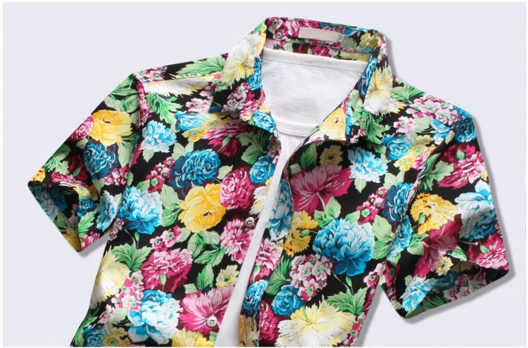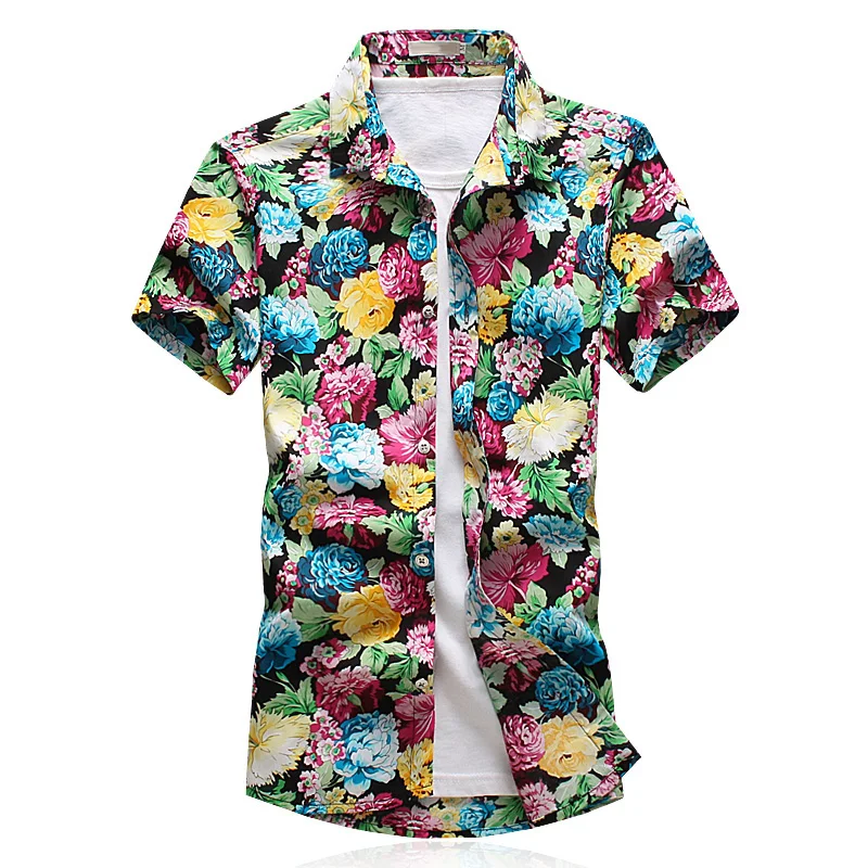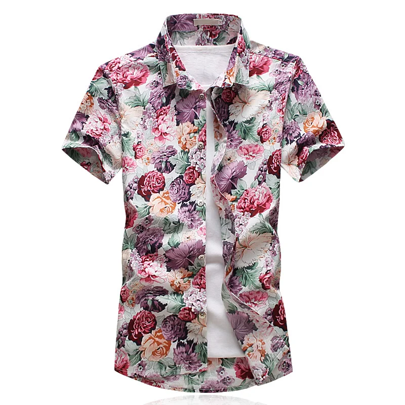 Keywords:New Mens Floral Printed Shirts Shorts Sleeve Men Shirt Asian Size 5XL